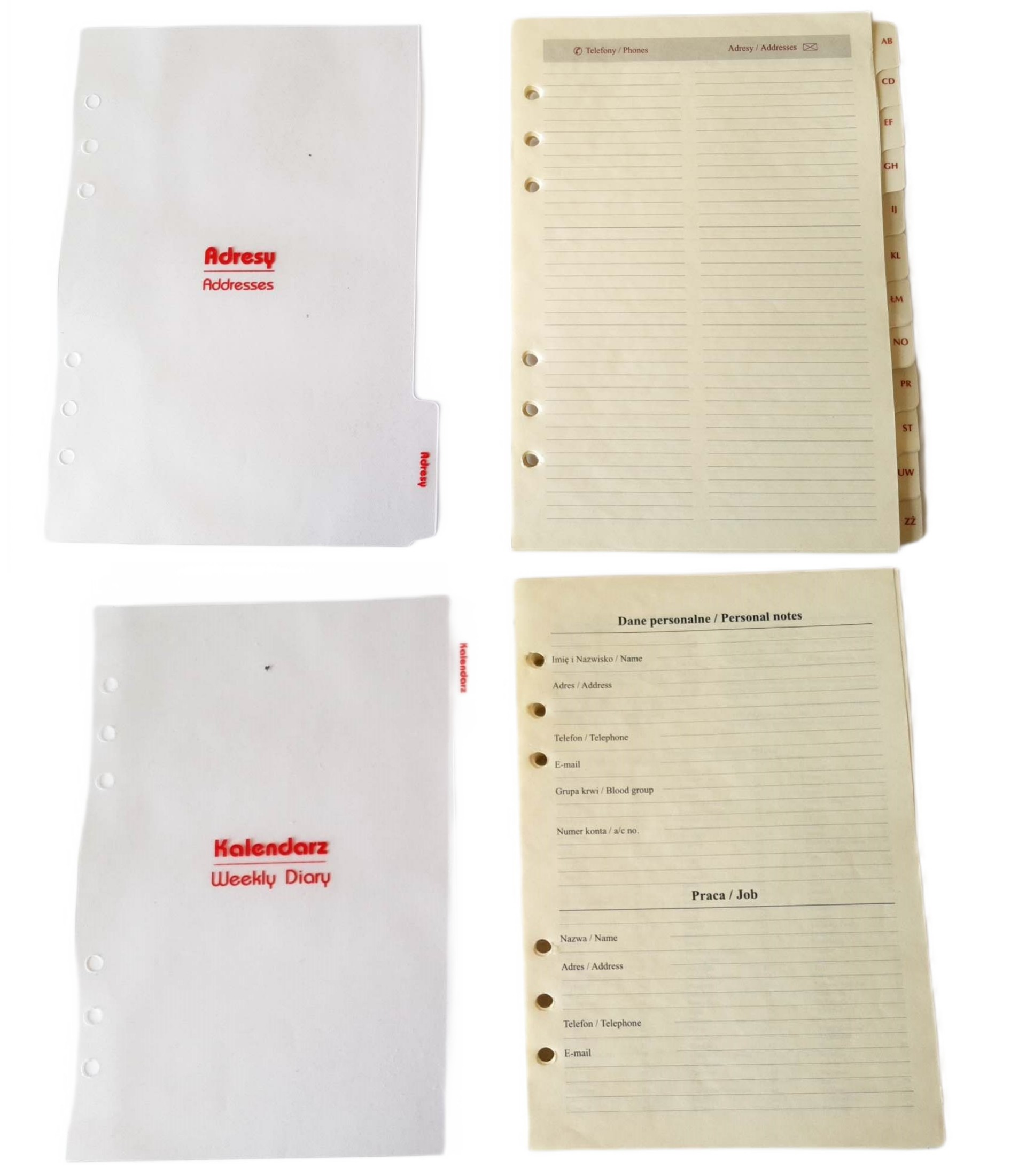 Pełny wkład organizera: kalendarz notes, adresownik, finanse