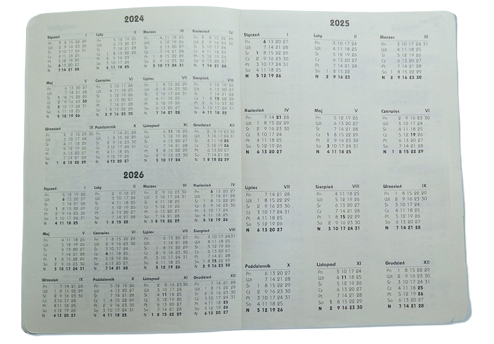 Kalendarz książkowy 2025 zbliżony A5 wymienny wkład tygodniowy Drops Office
