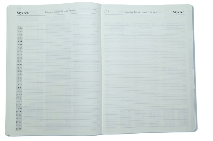 Nasz Kalendarz spełni Twoje oczekiwania! Okładka kalendarza wykonana z dwuwarstwowego termowrażliwego poliuretanu (ekoskóry), jest symbolem wyrafinowania i trwałości.
