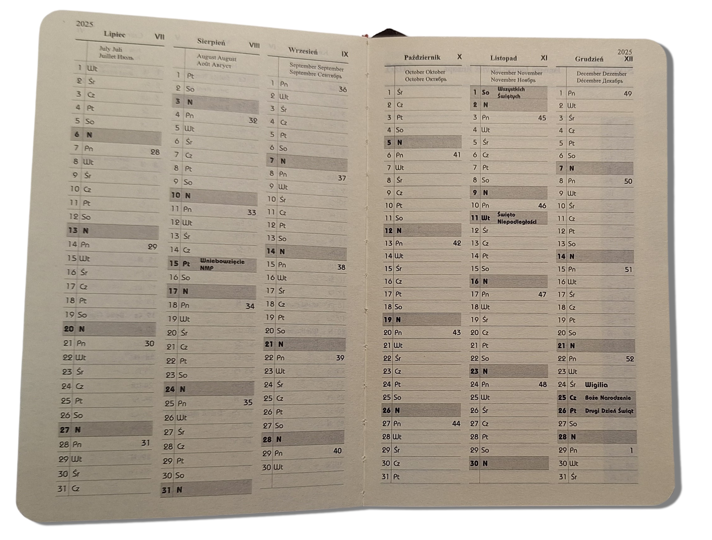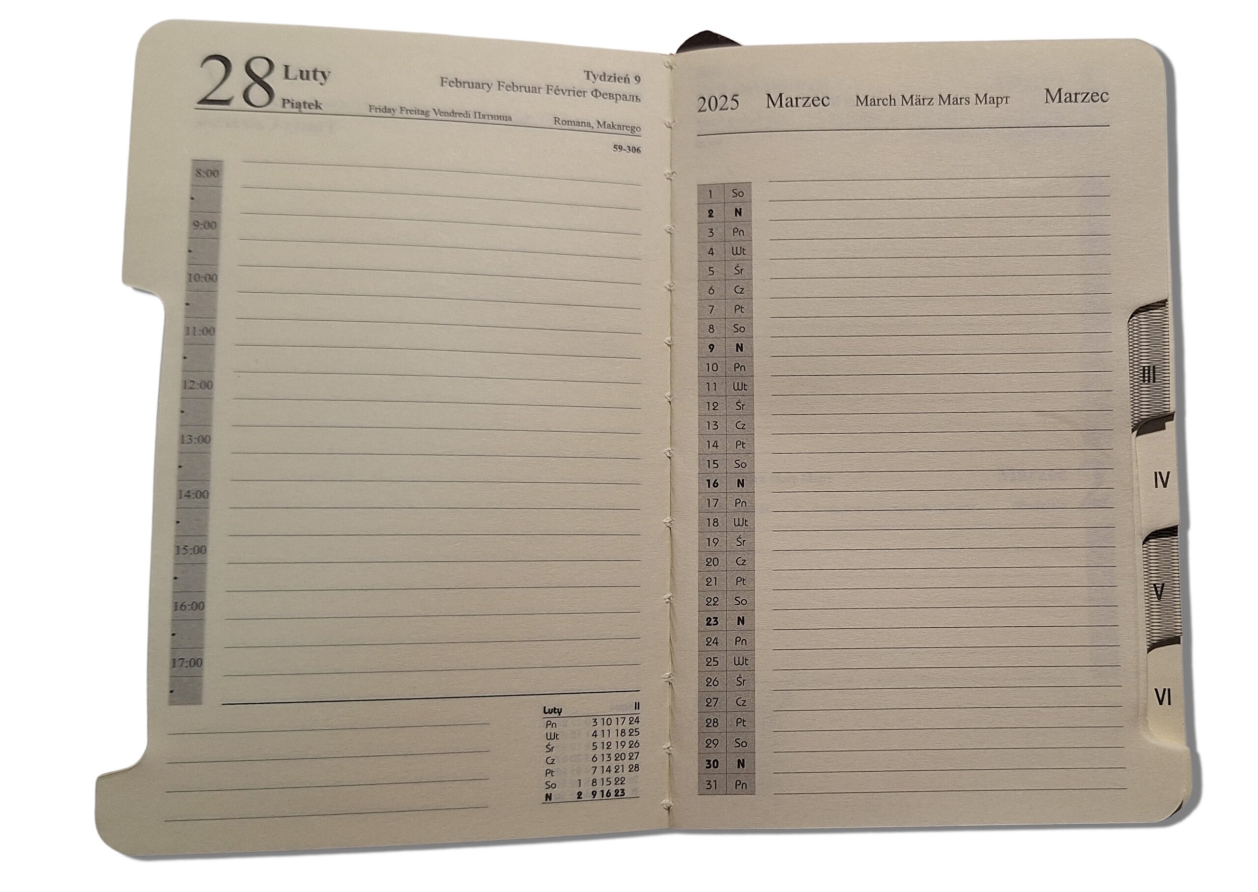 Kalendarz książkowy 2025 zbliżony do A6 wymienny wkład dzienny Drops Office