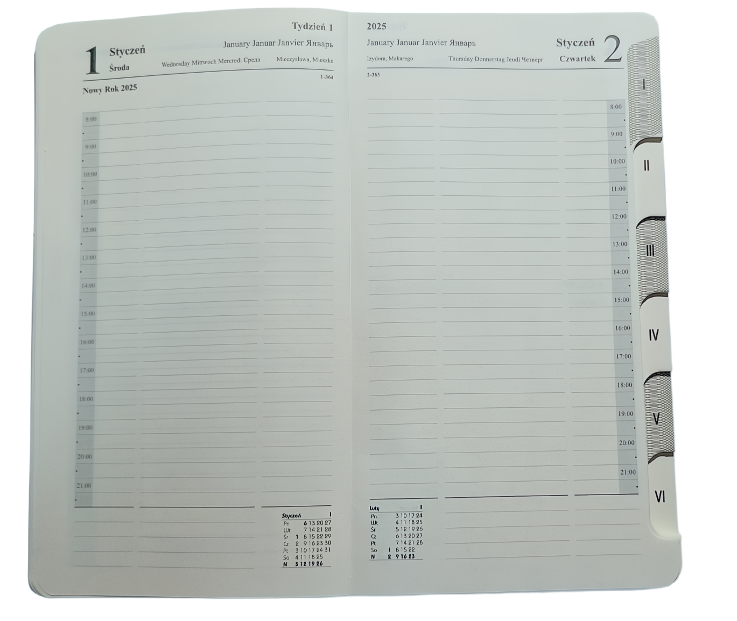 Kalendarz książkowy 2025 zbliżony do B6 wymienny wkład dzienny Drops Office