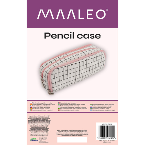 - SPECYFIKACJA – kolor: biały w czarną kratkę; materiał zewnętrzny: tkanina oxford 600D + pozostałe elementy: nylon + żelazo, wypełnienie: bawełna PP, podszewka: poliester; materiał wewnętrzny: poliester + nylon + guma; wyposażenie: brak; ilość komór: 3; wymiary: 7,5 x 9 x 26 cm; waga: 0,08 kg; waga w opakowaniu: 0,09 kg.
