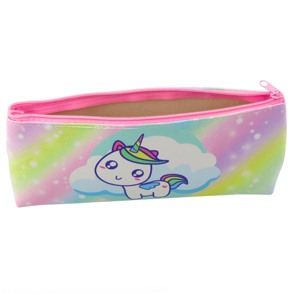 Uroczy piórnik dziewczęcy z motywem jednorożca to wyjątkowy dodatek do szkolnej wyprawki każdej małej miłośniczki bajkowych wzorów. Przepiękny wzór jednorożca na tle pastelowej tęczy i obłoków tworzy bajkowy klimat, który przyciąga wzrok i sprawia, że piórnik wygląda wyjątkowo radośnie i kolorowo. Jasna, tęczowa kolorystyka z delikatnym efektem połysku dodaje mu wyjątkowego uroku i sprawia, że każde dziecko poczuje się wyjątkowo.