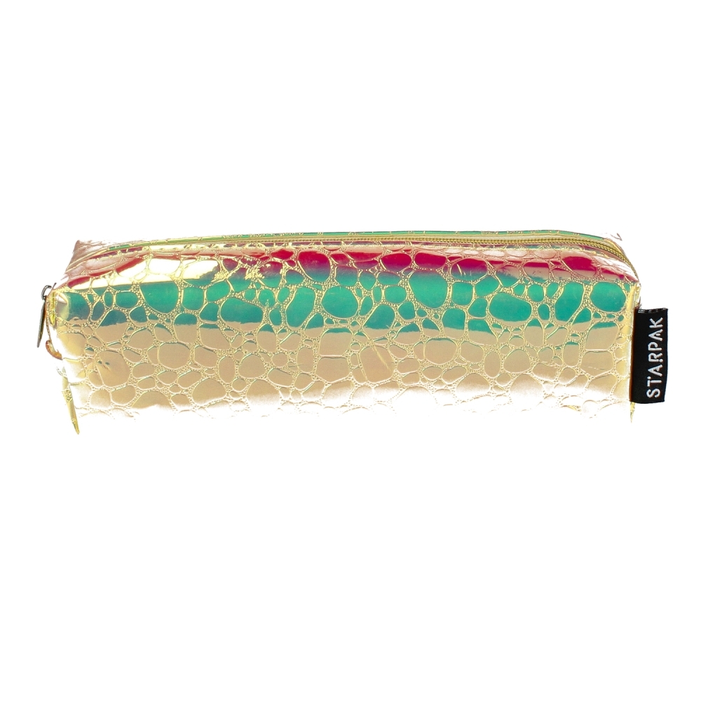 Piórnik w kształcie tuby z zamkiem błyskawicznym. Pomieści niezbędne artykuły piśmiennicze i nie zajmie dużo miejsca w plecaku. Z modnym efektem holograficznego błysku. Piórnik dostępny w kolorze złotym i fioletowym. Wymiary: 20,5 x 5 x 5,5 cm