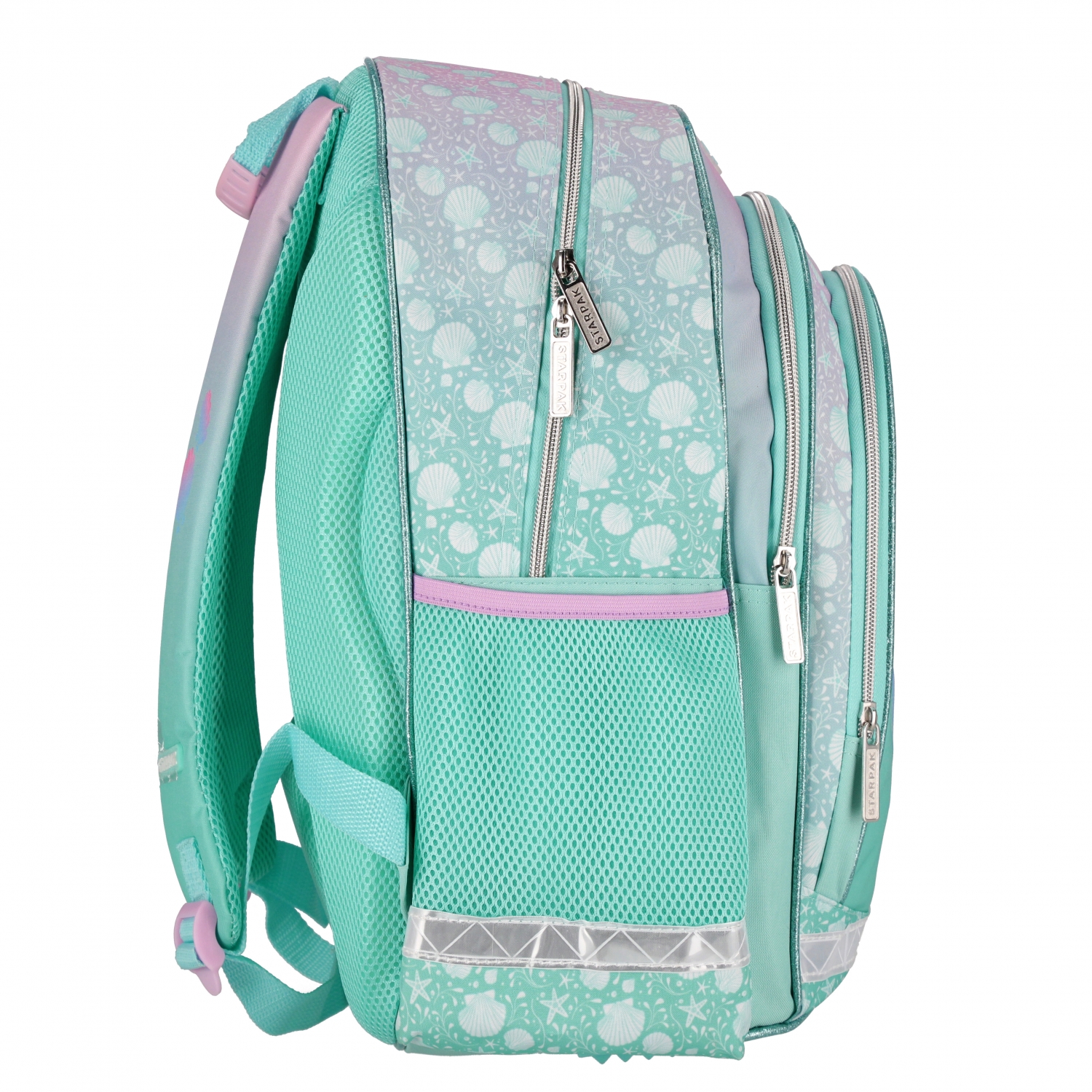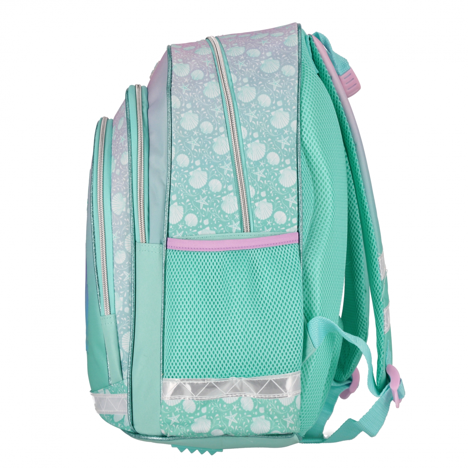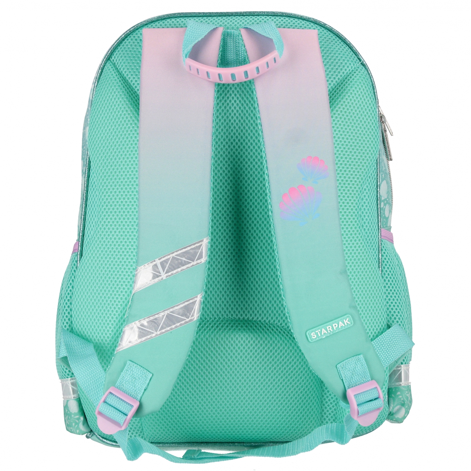 Zalety: plecak składa się z 1 dużej komory i 2 obszernych przednich kieszeni, 2 boczne wzmocnione kieszenie siatkowe na butelkę z napojem, wytrzymałe zamki błyskawiczne, plastikowe stopki na spodzie plecaka ochrona przed wilgocią i brudem , ergonomiczne plecy i szelki, plecy z systemem wentylacji dla większego komfortu, grube, miękkie szelki chronią ramiona, regulowane szelki pozwalają dopasować plecak do wzrostu i budowy ciała, uchwyt wzmocniony gumową opaską pozwalające zawiesić plecak na wieszaku lub wygodnie nosić go w ręce, odblaskowe paski umieszczone na przedniej kieszeni, na obu bocznych kieszeniach i na szelkach zwiększające widoczność plecaka w nocy bezpieczeństwo dziecka . Plecak szkolny składający się z dwóch komór zapinanych na zamek, co pozwoli na lepsze zorganizowanie wewnętrznej przestrzeni. Na zewnątrz znajduje się bardzo obszerna przednia, zapinana kieszeń, po bokach dwie kieszenie ze ściągaczem idealne na umieszczenie w nich bidonu z napojem. Plecy i szelki wyściełane gąbką zapewniają komfort użytkowania i równomierne rozłożenie obciążenia na plecach dziecka. Wykonany z trwałego materiału wykończonego elementami odblaskowymi dla większego bezpieczeństwa. Zapoznaj się również z innymi produktami STARPAK dedykowanymi młodzieży. Plecak w pastelowych kolorach z grafiką Muszli na froncie. Plecak jest wyrobem tekstylnym. Przeznaczony dla dzieci w wieku: 3 . Wymiary produktu wys. x szer. x gł. cm : 40x29x20, pojemność plecaka 23 l, waga produktu kg : 0,72 kg. Plecak pakowany w folię. w kartonie po 12 szt.