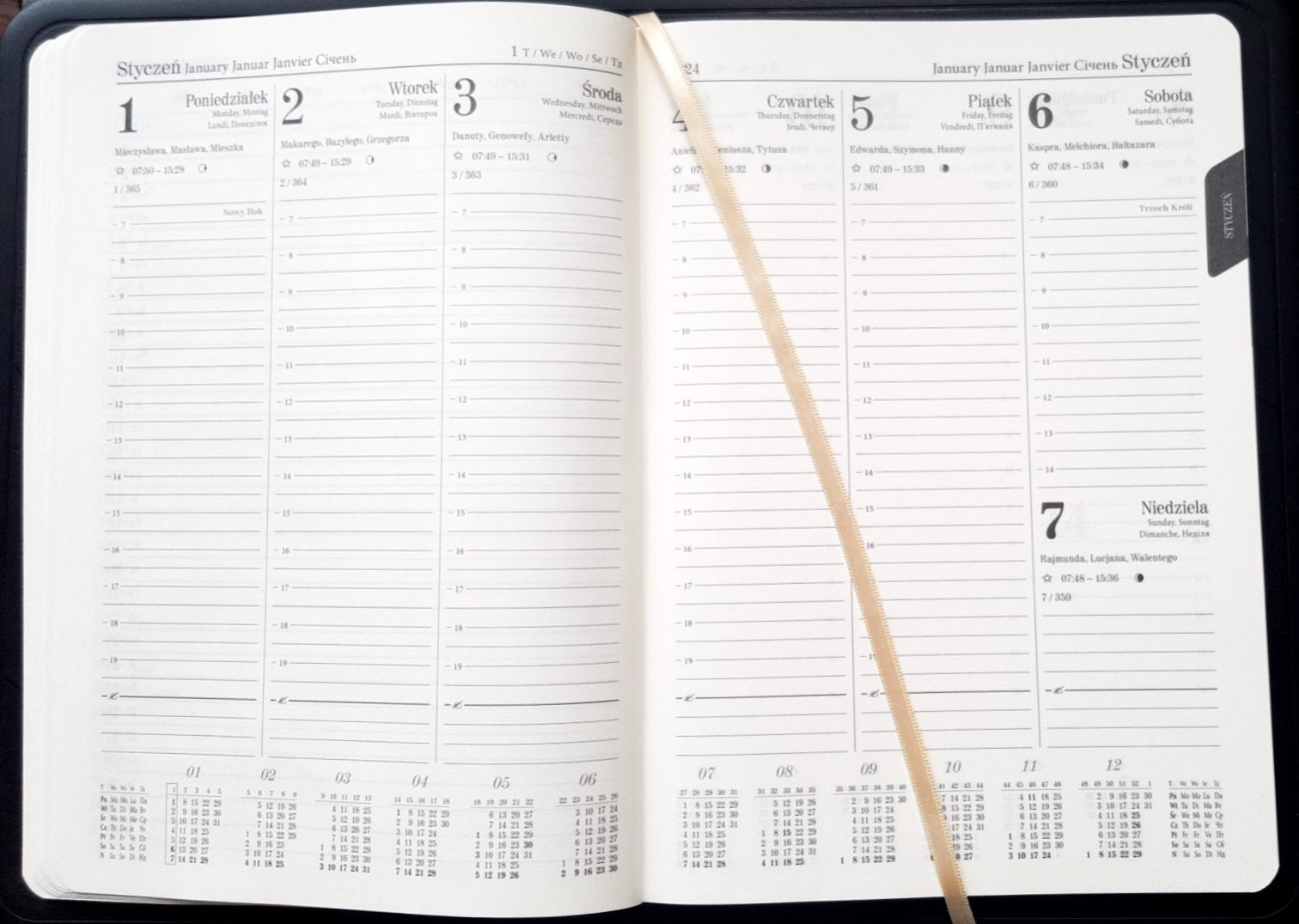 Okładka ręcznie wykonana z miękkiego połyskującego materiału ze skóry ekologicznej. Wnętrze wykończone zamszem w kolorze zbliżonym do okładki. Kalendarz posiada wymienny wkład dzięki czemu okładka może być wykorzystywana w następnych latach. U nas można dokupić wkład pasujący rozmiarem do oprawy. Możliwość różnych sposobów personalizacji kalendarza: np. poprzez tłoczenie na sucho lub z kolorową folią, grawerowanie laserowe oraz nadruk punktowy UV. Seria ta posiada eleganckie zapięcie magnetyczne wpuszczone w okładkę.
