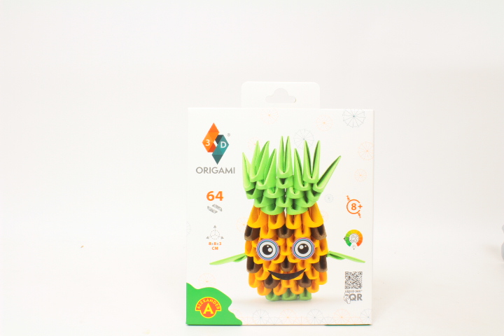 Wesołe warzywa i owoce z origami 3D to seria małych zestawów dla początkujących. Prosta instrukcja zapewnia idealne rozpoczęcie przygody z modułowym origami dla każdego dziecka. Zastosowanie opatentowanego kształtu z wyraźnie wytłoczoną linią zgięcia, sprawiło, że w trzech prostych ruchach możemy wykonać podstawowy moduł, który posłuży do stworzenia wesołego ananasa. Wszystkie moduły składa się identycznie, a następnie łączy ze sobą bez użycia kleju tworząc figurkę.W zestawie znajdziemy bardzo szczegółową instrukcję, która krok po kroku przeprowadzi nas przez proces tworzenia. Przed rozpoczęciem składania polecamy obejrzeć krótki filmik instruktażowy pokazujący technikę składania modułów oraz ich łączenia.