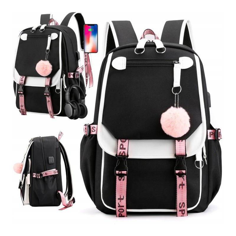 Plecak Tornister Szkolny Młodzieżowy USB – Duży ZestawDuży szkolny plecak: Idealny do szkoły, na wycieczki, bardzo pojemny, dwukomorowy Zestaw zawiera:Plecak szkolnyKabel USBKabel JackWyjście USBBrelok pomponik⭐ Specyfikacja ⭐Materiał: Wykonany z tkaniny Oxford, wodoodporny i wytrzymałyZapięcie: Plecak zapinany na zamek błyskawicznyErgonomia: Ergonomiczne szelki i plecyKomory:Komora główna z przegródką na książki lub tablet + 3 przegródki na piórnik, akcesoriaKomora przednia otwierana na zamekKieszonki: Trzy kieszonki na przodzie plecaka, zapinane na zamekMiejsce na bidon: Dwie boczne kieszenieRegulowane szelki: Pozwalają na dopasowanie plecaka do budowy ciałaPort USB: Zewnętrzny port USB do podłączenia powerbanku, umożliwiający ładowanie urządzeńWyjście na słuchawki: Micro jack oraz wyjście USBDodatki: Kabel USB, kabel do słuchawek Jack, breloczek pomponiki✅ Wymiary plecaka:Wysokość: 46 cmSzerokość: 29 cmGłębokość: 16 cmWaga:660g